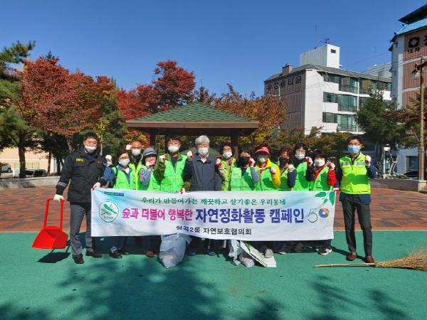 형곡2동에서는 10월 20일(화) 11시에 자연보호협의회 회원 20여명이 참여한 가운데 형곡중앙시장 및 시무실공원에서 10월 월례회의 및 자연정화 활동을 실시하였다.