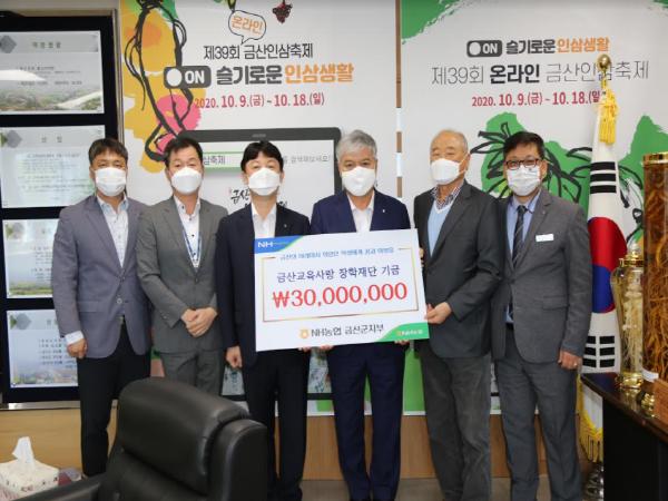 NH농협은행 금산군지부는 2010년부터 올해까지 장학기금으로 총 3억3500만 원을 후원하는 등 지역 인재육성을 위한 지원을 이어오고 있다.
