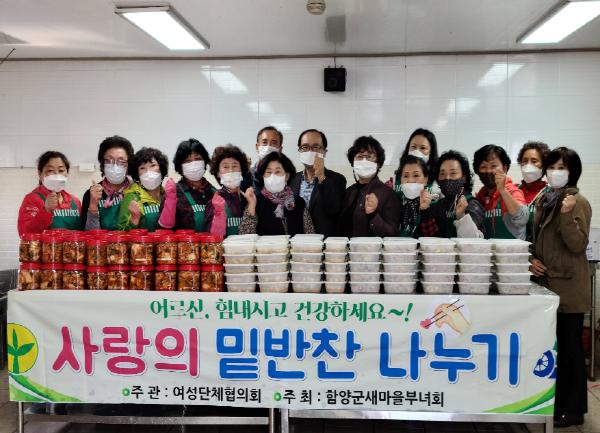 함양군여성단체협의회는 지난 3월부터 11월까지 소속?단위단체 별로 월 1회 정기적으로 밑반찬을 만들어 어려운 가구에 전달하는 사랑을 실천해 바람이 차가워지는 요즈음 따뜻한 소식을 전하고 있다.