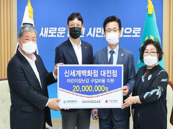 신세계백화점 대전점(2021년 8월 오픈예정)은 20일 오후 3시 30분 시청 응접실에서 사회복지공동모금회를 통해 대전시에 어린이 장난감 구입비용 2,000만원을 지정 기탁했다.
