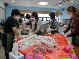 자원봉사자 18명이 모여 돈가스 400인분을 정성껏 만들어 포장했다. 완성된 음식은 연희동 조손가정 50가구와 단기보호시설 및 장애인복지시설에 전달됐다.