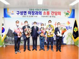 김충섭 김천시장은 지난 20일 구성면사무소 2층 회의실에서 27명의 구성면 이장들과 함께 시정발전을 위한 현장의 목소리를 듣고자 소통 간담회를 개최하였다.