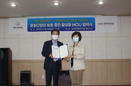 평택시문화재단(이사장 정장선)과 평택대 다문화가족센터(소장 한정우) 간 ‘문화다양성 보호·증진 활성화를 위한 업무협약(MOU)’이 10월 20일 체결됐다.