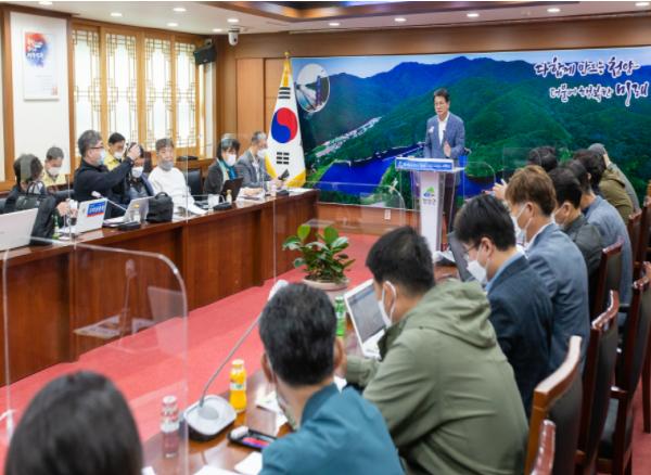 김 군수는 20일 오전 군청 상황실에서 10월 정례 브리핑을 갖고 김 군수는 “지난해 12월 조례를 제정하고 지난 5월 추진위원회까지 구성해 놓고도 코로나19 때문에 어려움이 많았다”면서 “상황이 나아진 만큼 3대 분야 20개 추진과제를 본격 추진하겠다”고 밝혔다.