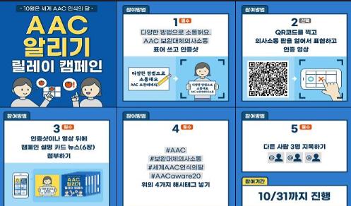 구는 10월 세계 AAC 인식의 달을 맞이해 AAC에 대한 대중의 인식을 높이고 이를 활용한 소통 방법을 전파하기 위해 ‘AAC 알리기 릴레이 캠페인’을 진행 중이다.