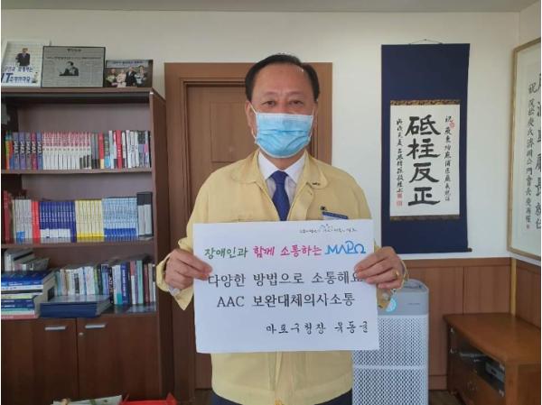 지난 5일 유동균 마포구청장이 처음 시작한 의사소통 보완수단 ‘AAC’의 홍보 릴레이 캠페인이 마포구 전역으로 확대되고 있다.