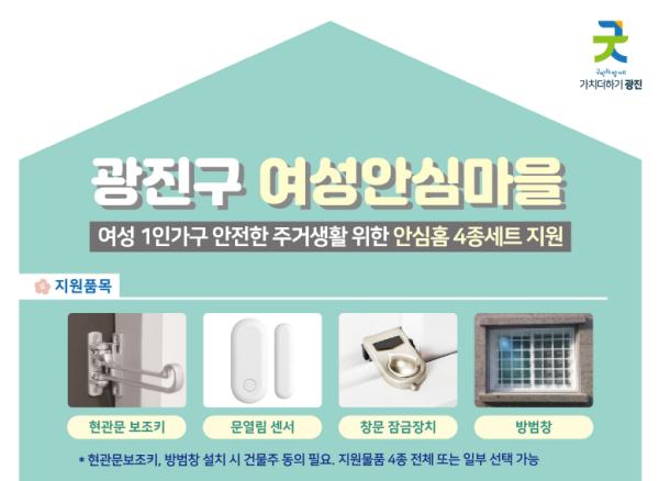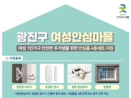 광진구가 여성 1인 가구의 안전한 주거생활 조성을 위해 ‘안심홈 4종 세트’ 지원사업을 확대 시행한다.