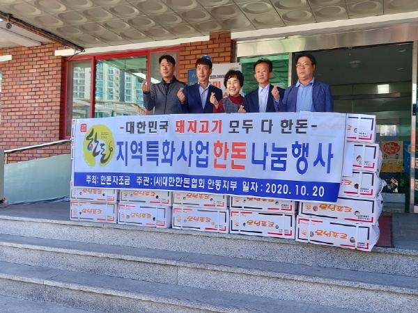 (사)대한한돈협회 안동지부는 매년 저소득층 및 복지시설을 위해 돼지고기 나눔 문화 실천에 앞장서고 있으며, 올 2월과 4월에도 1,421kg(800만 원 상당)의 돼지고기를 기탁한 바 있다.