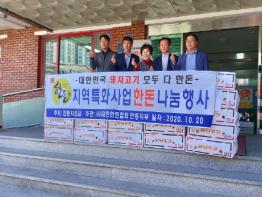 (사)대한한돈협회 안동지부장 진용안은 10월 20일 이웃사랑을 위한 국민건강기원 한돈 나눔행사를 통해 돼지고기 1,200kg(300만원 상당)을 안동시에 전달했다.
