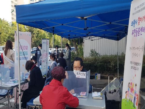 의왕시 무한돌봄센터는 지난 20일 오전동 신안아파트에서 올해 들어 7번째로‘찾아가는 무한돌봄센터’를 운영했다.