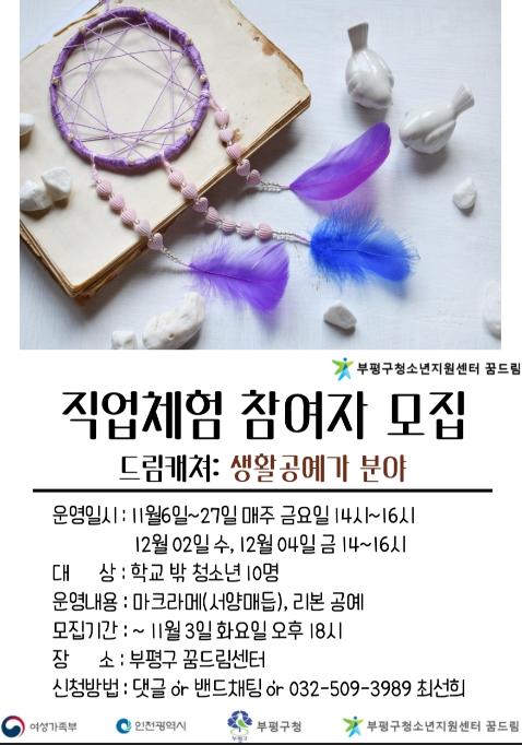부평구 학교 밖 청소년지원센터 꿈드림이 학교 밖 청소년들의 진로탐색 과정을 돕기 위해 직업체험 ‘드림캐쳐: 생활공예 예술가’프로그램을 마련했다.