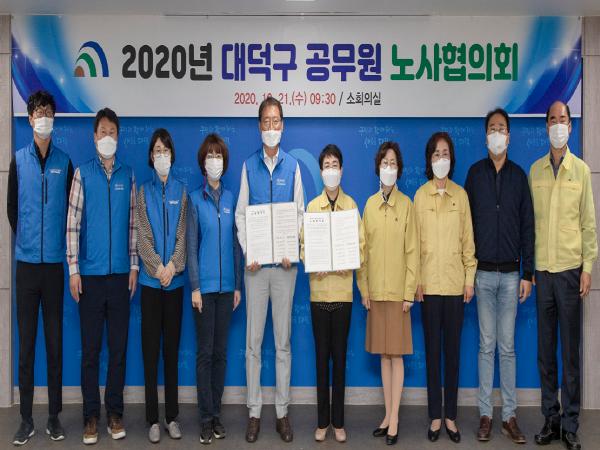 대전 대덕구는 21일 구청 소회의실에서 공무원노동조합과 노사협의회를 통해 근무조건 개선 등 11건의 요구안건을 합의했다.