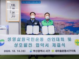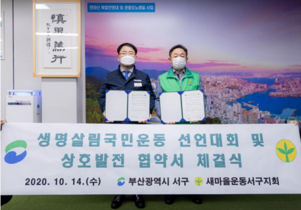 부산시 서구는 지난 14일, 새마을운동서구지회와 생명살림국민운동 발전을 위한 협약식을 진행했다.
