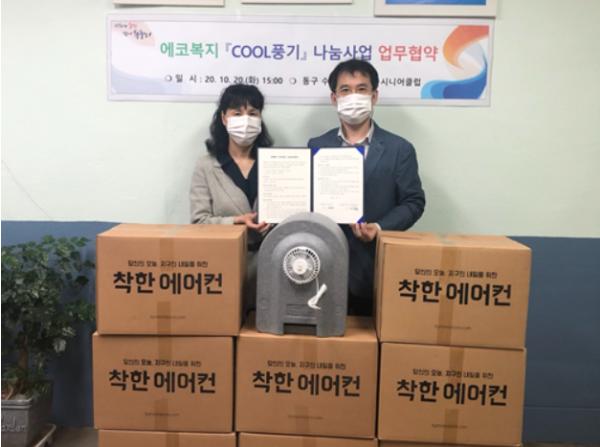 부산시 동구 수정1동과 동구시니어클럽은 지난 20일 에코복지 COOL풍기 나눔사업 업무협약식을 가졌다.