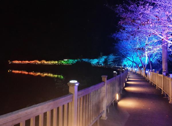 합천군에 따르면 빛의 밸리 야간콘텐츠 조성사업으로 정양레포츠공원과 보조댐 산책로에 다양한 색상과 패턴의 LED 조명을 시범 설치해 합천이 빛의 고장으로 재탄생했다고 21일 밝혔다.