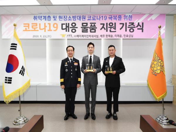 배우 이제훈과 ㈜에이제이인터내셔널은 취약계층의 코로나19 극복을 위해 지난 달 소방청에 일회용 마스크 16만 매를 기부했다.