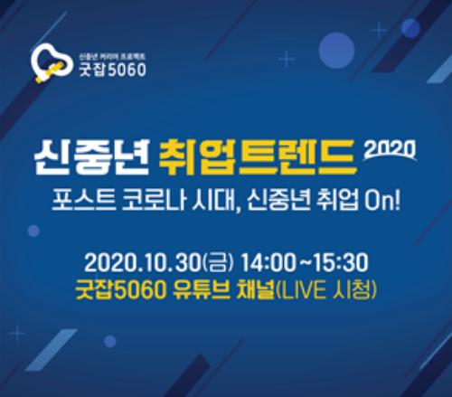 30일(금) 오후 2시부터 1시간 30분간 진행되는 ‘신중년 취업트렌드2020’ 세미나는 비대면 시대에 취업을 고민하는 사람은 누구나 참여할 수 있도록 ‘굿잡5060 유튜브’ 채널을 통해 생중계로 진행될 예정이다.