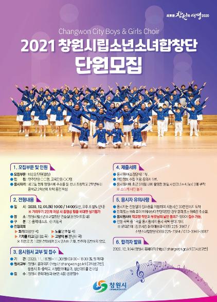창원시립소년소녀합창단이 창원의 문화사절단이 될 참신하고 유능한 신입단원을 모집한다고 밝혔다.