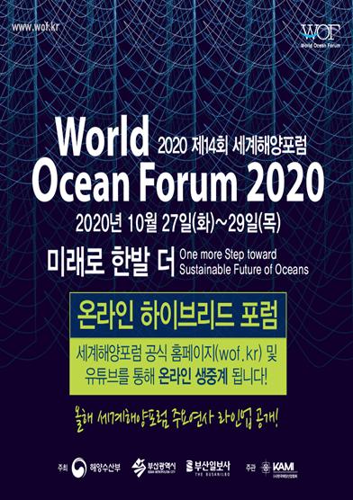 해양수산부는 부산광역시, 부산일보, (사)한국해양산업협회와 공동으로 10월 27일부터 29일까지 부산 롯데호텔에서 ‘2020 제14회 세계해양포럼(World Ocean Forum)’을 개최한다.