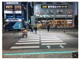 신호등이 초록불로 바뀌면 바닥의 LED 패널도 동시에 초록색으로 변해 보행자들이 보행신호를 확인하는 데 도움을 줄 수 있다.