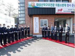 충북 괴산군이 20일 칠성면 태성리에서 태성산악구조전문 의용소방대 신청사 준공식을 개최했다고 밝혔다.
