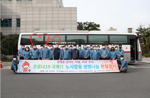 대구도시철도공사는 10월 21일(수) 10시 상인동 본사 및 3개 차량기지사업소(월배, 문양, 경전철)에서 노·사가 합동으로 생명나눔 헌혈 봉사활동을 진행하고, 상인네거리에서는 지역사회의 헌혈 동참을 촉진하기 위한 캠페인도 펼쳤다고 밝혔다.