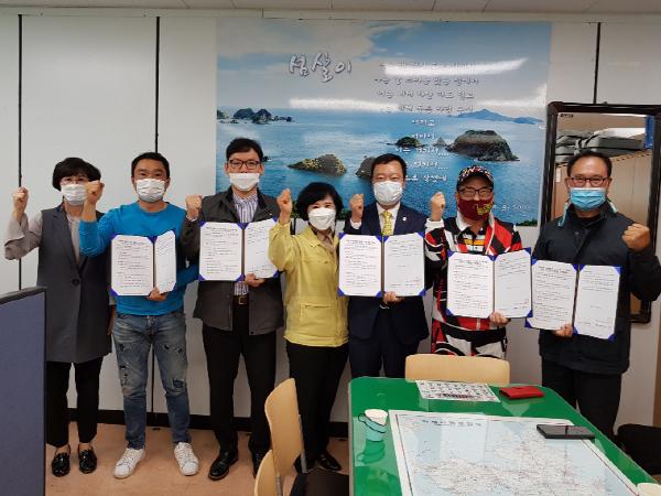 거제시는 20일 관내 고위험시설 〔유흥주점(부지부장 하성원), 단란주점(지부장 김삼범), 노래연습장(지부장 박상표)〕 지부장 및 중위험 다중이용시설 〔일반음식점(지부장 이상봉), 목욕장(지부장 강승우)〕지부장과 방역수칙 자율시행 협약을 체결했다.