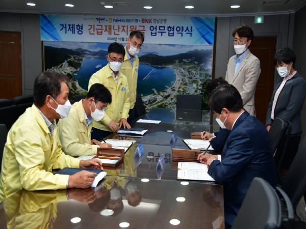 이와 관련?시는 21일?NH농협, BNK경남은행과 거제형 긴급재난 지원금 지급을 위한 업무 협약을 체결했다.