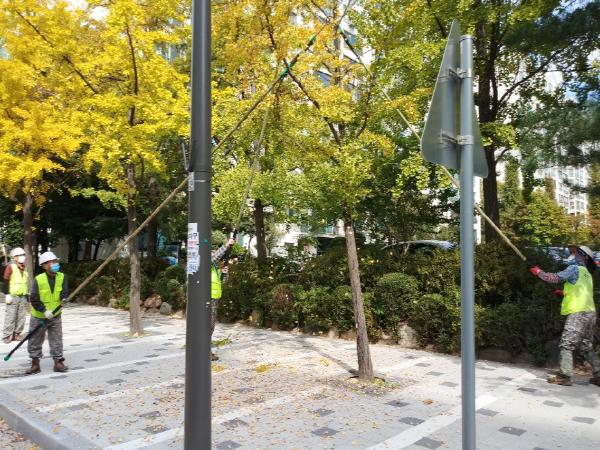 지난 9월 21일부터 ‘은행나무 열매털이 기동반’을 편성하고 버스정류장, 지하철 출입구, 상가밀집지역 등 주민 통행이 많은 지역부터 대나무 장대를 이용하여 조기 열매 털이작업을 시행하였다.