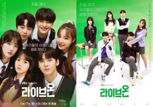 그룹 '뉴이스트' 멤버 황민현과 배우 정다빈 등 '라이브온' 출연진이 포스터를 통해 청춘들의 싱그러운 이야기를 예고했다.