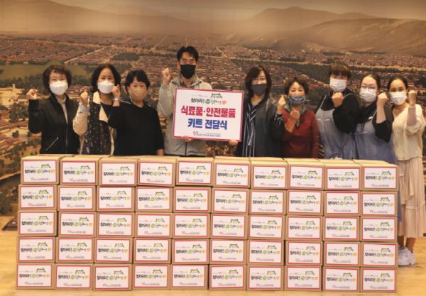 식료품·안전키트는 어르신들이 간편하게 드실 수 있는 참치캔, 스팸, 사골곰탕, 김자반 등 총 9가지 종류의 물품과 마스크 등으로 구성됐다.