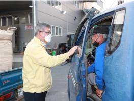 김 군수는 산물벼 수매가 한창인 현장을 몸소 느끼고 농민과 함께하는 ‘농업 행정’을 위해 팔을 걷으며 올해 쌀 작황과 매입 상황 등을 점검하고 농민들을 만나 시름을 위로했다. 또한, 관계자들 노고를 격려하며 안전한 매입을 위해 최선을 다해 달라고 당부했다.
