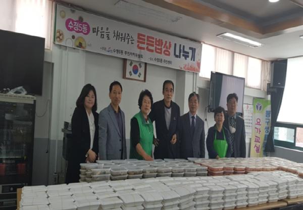 부산시 동구 수정5동은 지난 21일 주민자치위원회(위원장 손설화) 주관 「마음을 채워주는 든든밥상 나누기」 행사를 개최했다.