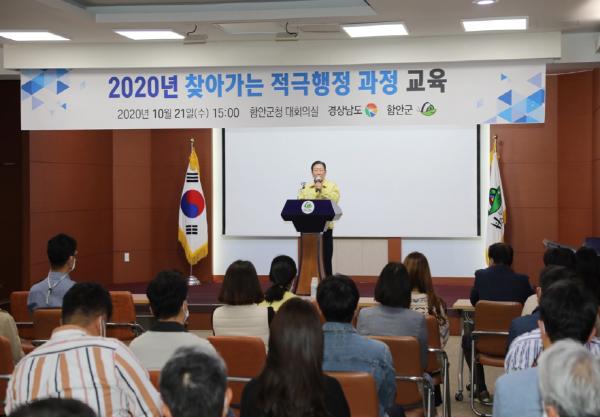 함안군은 지난 21일 오후 3시 군청 3층 회의실에서 군 공무원과 함안지방공사 직원 등 70여 명을 대상으로 ‘사전 컨설팅감사제도 및 적극행정 이해 교육’을 실시했다.