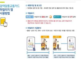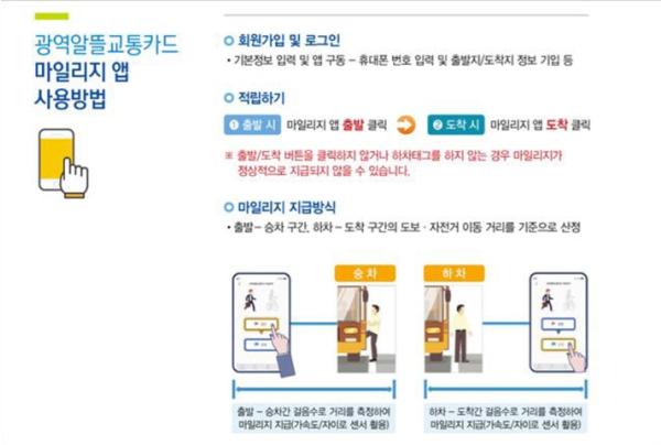 카드발급과 이용에 관한 정보는 광역알뜰교통카드 누리집(https://www.alcard.kr/) 에서 확인 가능하며, 발급받은 교통카드는 반드시 마일리지 앱과 함께 사용하여야 한다.