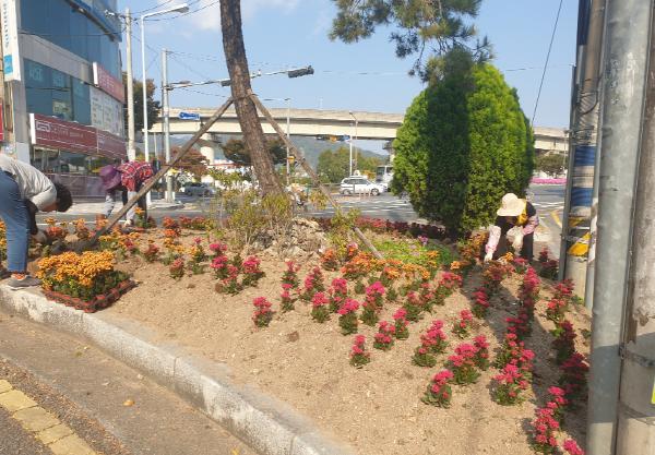 지난 9월부터 이달 중순까지 꽃밭 조성에 새마을 부녀회, 적십자 봉사회, 자율방재단 등 지역 사회단체 회원 50여 명이 참여하여 5개소의 화단에 꽃 심기, 꽃씨 파종을 실시하여 도시경관을 개선하는 데 힘을 보태고 있다.