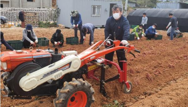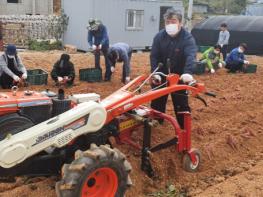 이에 지난 21일 용남면 대안마을에서 경남농업기술원과 농업기술센터 직원 30여명이 참여하여 고령화로 고구마 수확작업(2,000㎡)에 어려움을 겪는 농가를 지원하였으며 이번 일손 돕기는 농번기 인력이 부족한 농가에 실직적인 도움을 주고자 이뤄졌다.