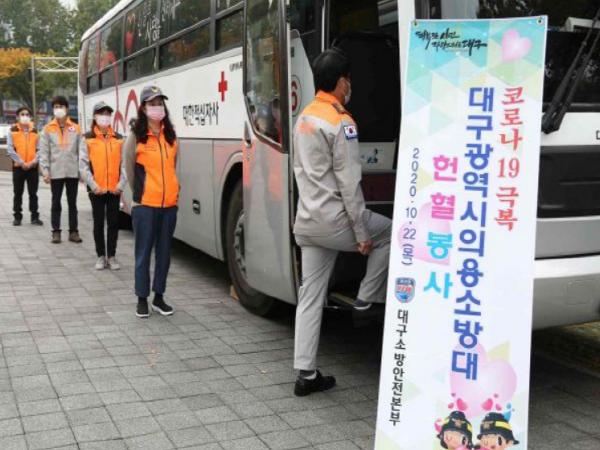 이날 헌혈 봉사는 대구광역시 의용소방대원 120여 명이 참여한 가운데 오전부터 진행됐다. 대원들은 코로나19 발병 이후 줄어드는 혈액 수급난 해소에 기여하고 혈액을 공급받지 못해 고통받는 이웃에게 따뜻한 사랑을 전하고자 자발적으로 동참했다.