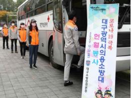 대구광역시 의용소방대가 22일 대구FC축구장 주차장에서 사랑의 헌혈 운동을 펼쳤다.