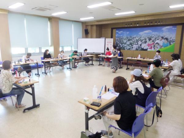 아토피 예방 교실은 아토피 이론과 케어제품 만들기 실습(프로폴리스 밀랍초, 아로마 공기정화 스프레이, 달맞이꽃 종자유 페이스 & 바디 로션, 발효마유크림 만들기) 등으로 구성된다.