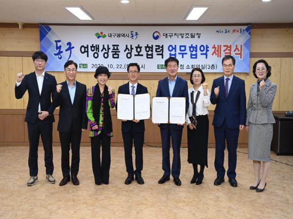 대구 동구청과 대구지방조달청은 22일 동구청에서 ‘멋진 동구 힐링여행 상품’ 개발 및 공급에 관한 상호협력을 위해 업무협약(MOU)을 체결했다.