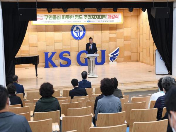 부산 영도구는 10월 21일 고신대학교 코람데오 아트홀에서 지방자치 시대 지역 발전의 원동력인 구민의 자치역량을 강화하고 지역을 이끌어가는 핵심인력을 양성하기 위한 ‘제16기 영도 주민자치대학’을 개강하였다.