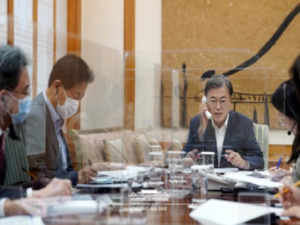 문재인 대통령은 22일 오후 5시30분부터 카심-조마르트 토카예프 카자흐스탄 대통령과 전화 통화를 했다.