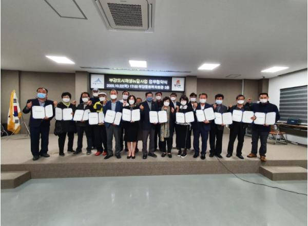 세종특별자치시 부강면 도시재생뉴딜사업 주민협의체(공동위원장 강정일·이창우)가 지난 22일 부강면 문화복지회관에서 지역유관기관·단체와 도시재생뉴딜사업 활성화를 위한 협약을 체결했다.