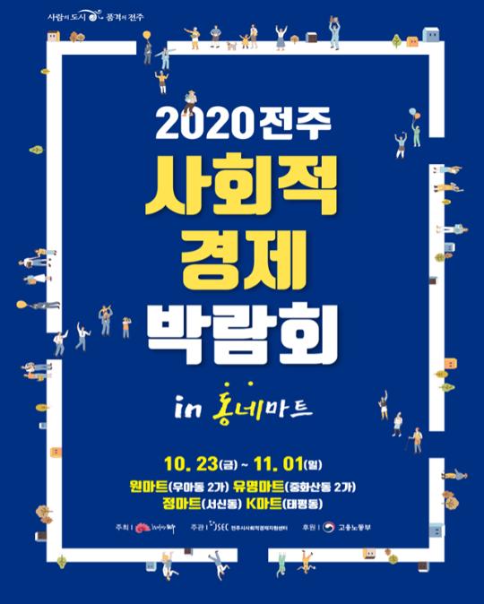 전주시와 전주시 사회적경제지원센터는 23일부터 11월 1일까지 총 10일간 ‘2020 전주 사회적경제 박람회 in 동네마트(이하 박람회)’를 온·오프라인으로 병행 개최한다. 자본주의 시장경제가 발전하면서 나타난 불평등과 빈부격차, 환경파괴 등 다양한 사회문제에 대한 대안으로 등장한 사회적경제는 이윤의 극대화가 아닌 사람의 가치를 우위에 두는 경제활동을 특징으로 한다.