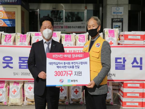 부천시는 지난 22일 대한적십자사봉사회 부천지구협의회(회장 이순길)에서 백미 10kg 100포, 라면 100박스, 구호품 세트 100박스를 기탁했다고 밝혔다.