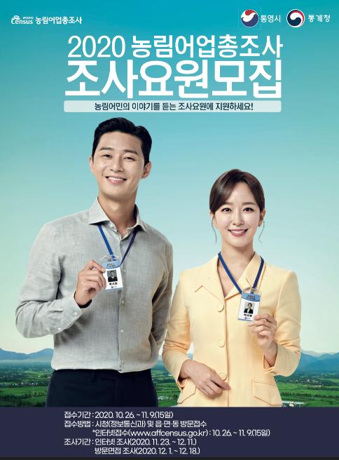 통영시는 11월 23일부터 12월 18일까지 진행되는‘2020 농림어업총조사’의 조사요원을 모집한다.
