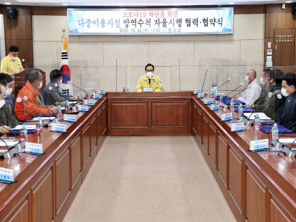 창녕군은 지난 22일 군청 군정회의실에서 고위험시설 및 중위험 다중이용시설 협회·단체와 코로나19 방역수칙 자율시행을 위한 협약식을 체결했다고 밝혔다.