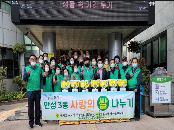 안성시 안성3동 새마을지도자(남, 녀)협의회 회원들이 지난 22일 지역 내 거주하는 어려운 이웃들을 위해 사랑의 쌀 나누기 행사를 실시했다고 밝혔다.