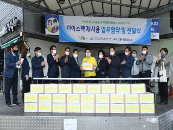 구리시 지속가능발전협의회는 22일 구리전통시장에서 공동의장인 안승남 구리시장, 임순빈 공동의장, 조종덕 전통시장 상인회 회장 등 관계자 20여명이 참석한 가운데에 아이스팩 재사용 사업을 위한 업무 협약식을 가졌다고 밝혔다.